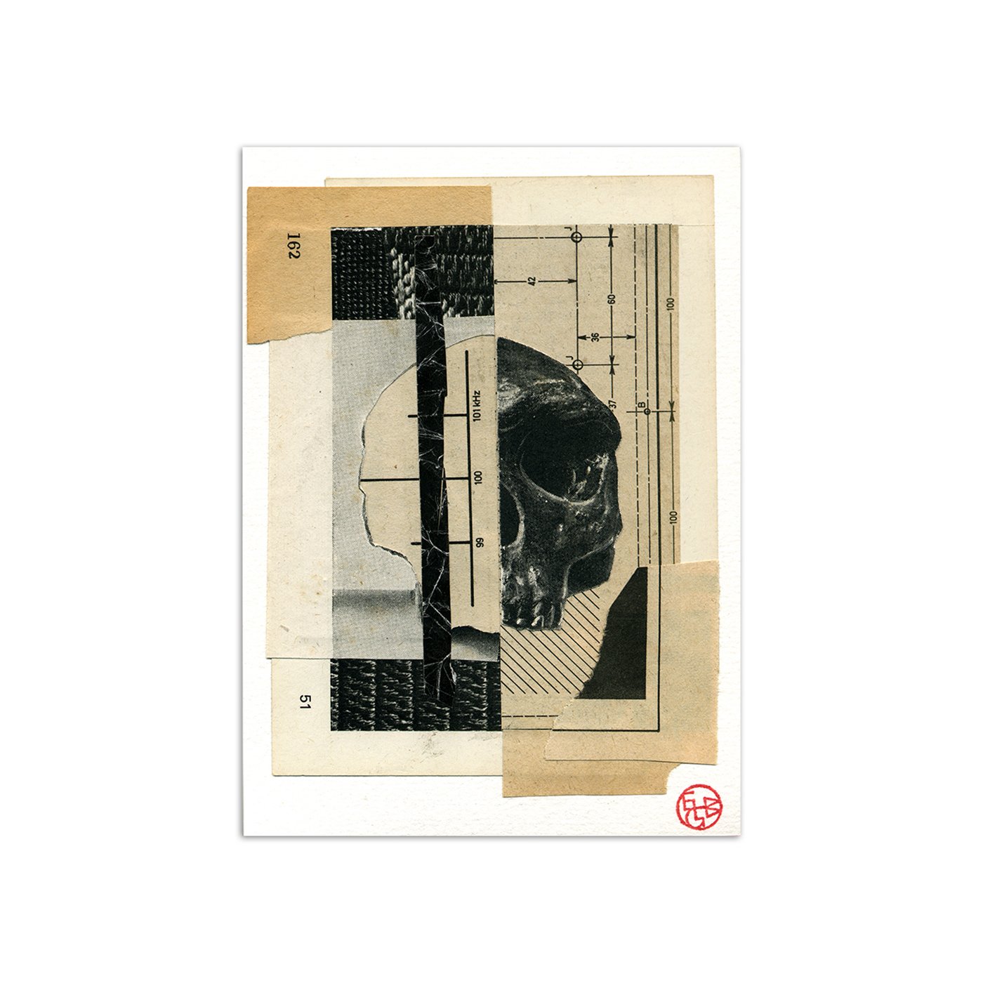 Each element was carefully selected, individually hand cut and assembled to create this one-of-a-kind artwork full of dramatic monochromatic texture and dark humour.