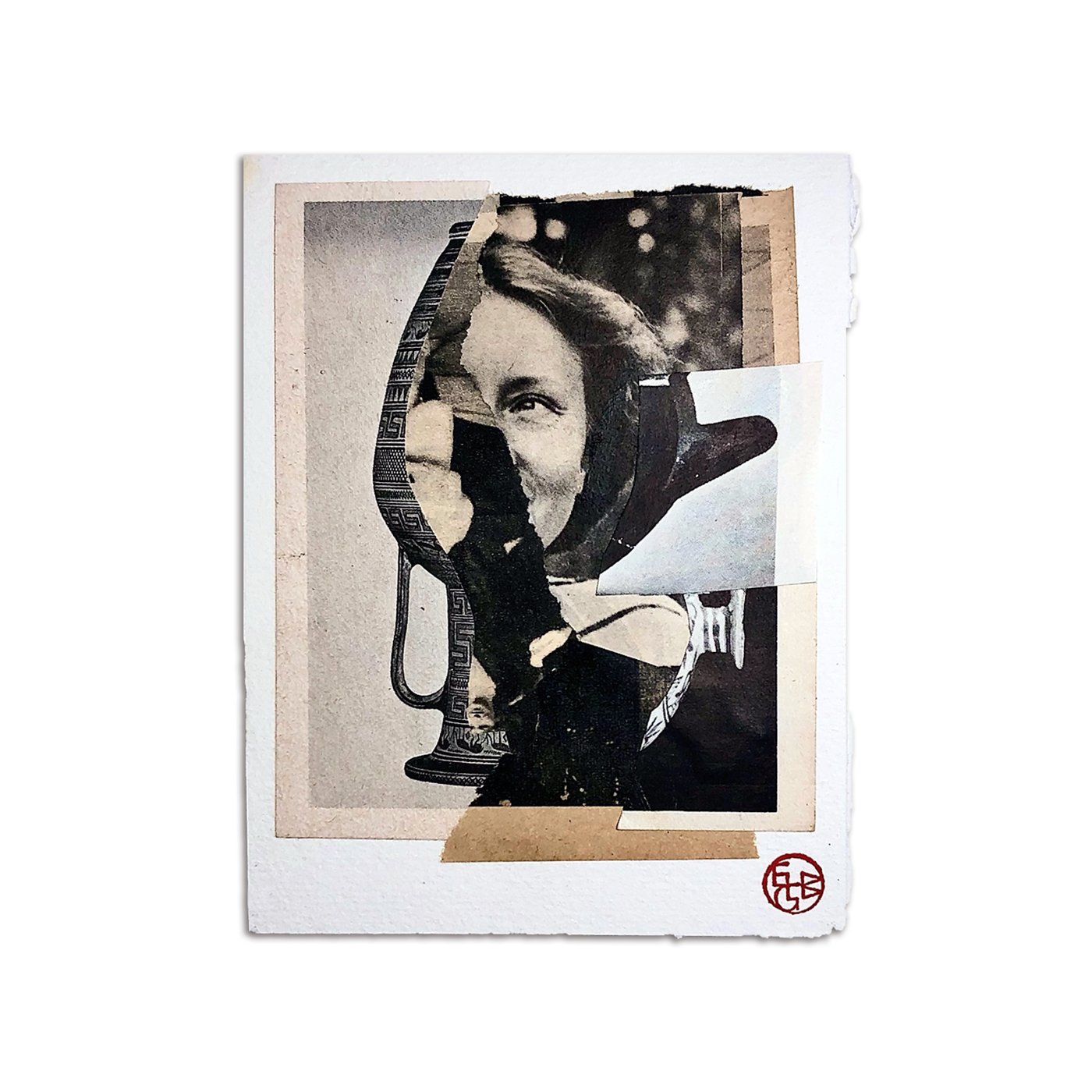 This original hand-made collage was constructed using vintage book pages and black ink on watercolour paper.